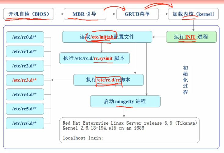 内核文件加载之后,就开始运行第一个程序/sbin/init,它的作用是初始化系统环境